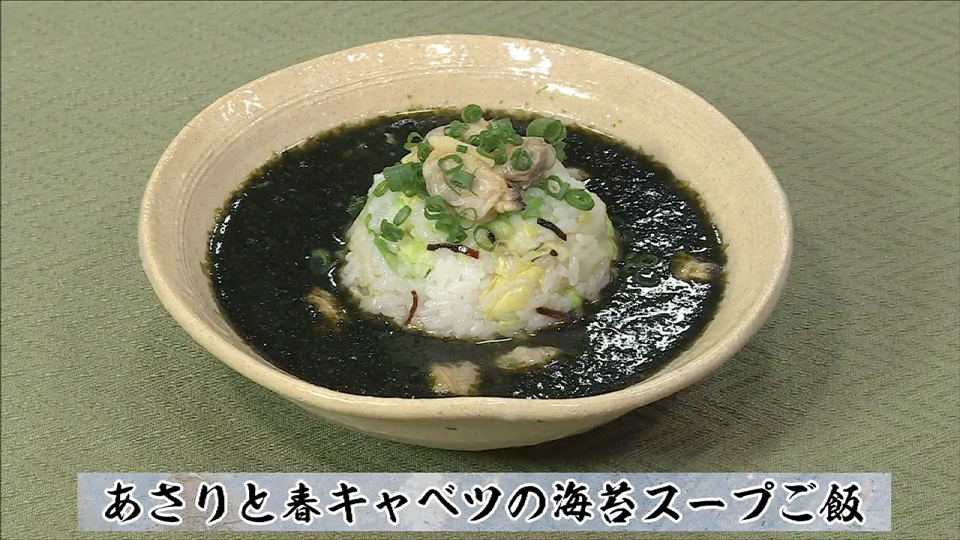 「あさりと春キャベツの海苔スープご飯」